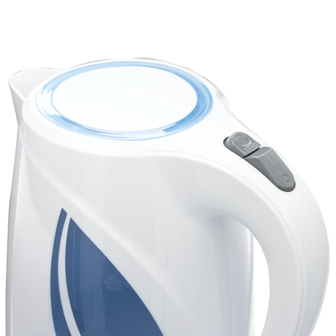 Стильный и эргономичный дизайн, термостойкий пластик с синими декоративными вставками. Вода закипает за считанные минуты благодаря большой мощности. Данная модель отлично подходит для эксплуатации как дома, так и в офисе.