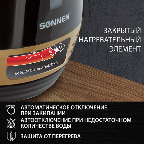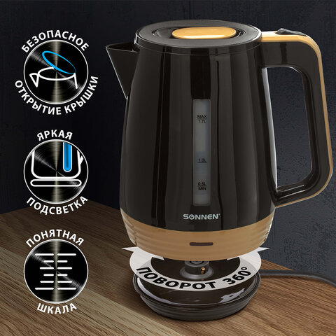 Чайник SONNEN KT-1776, выполненный из термостойкого пластика с декоративными вставками, отличается стильным и эргономичным дизайном. Данная модель отлично подходит для эксплуатации как дома, так и в офисе.