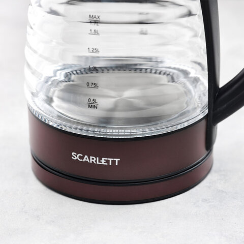 Электрический чайник SC-EK27G97 имеет сбалансированный дизайн – прозрачный корпус из ударостойкого стекла Crystal Pro и лаконичная декорация шоколадного цвета придают прибору особый шарм.
