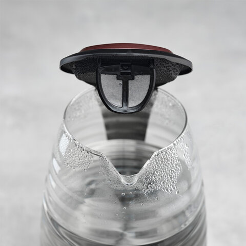 Волнистая форма стекла и яркая внутренняя подсветка превратят процесс кипячения в нечто завораживающее. В чайнике предусмотрен нейлоновый фильтр, который защитит от накипи. Прибор оснащён системой многоуровневой безопасности Safe Work - автоотключение при закипании и защита от включения без воды.