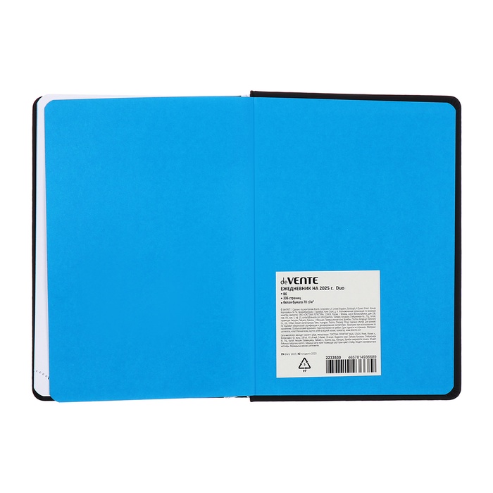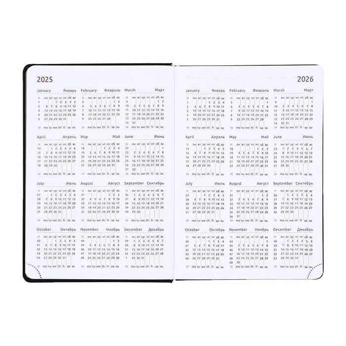 Ежедневник датированный 2025, A6+, 176 листов, ESCALADA, мягкая обложка из искусственной кожи, блинтовое тиснение, тонированный блок 70 г/м2, черный