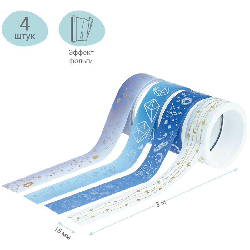 Набор клейких декоративных лент MESHU "Sparkles", 4шт