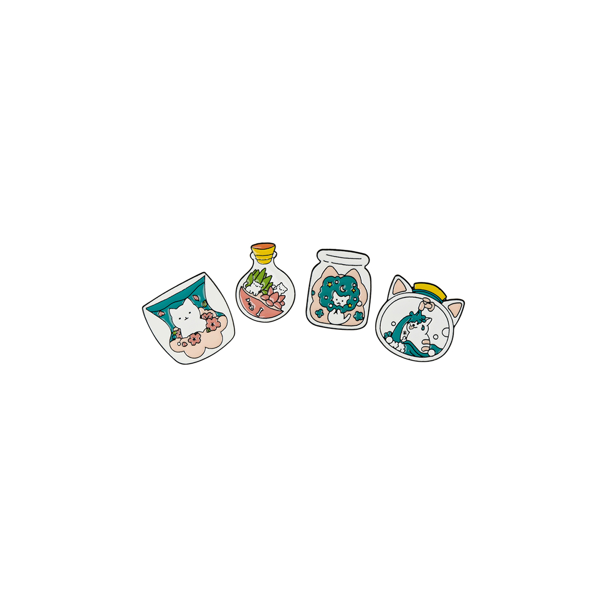 Набор металлических значков MESHU White cats поможет украсить худи, джинсовку, косуху или рюкзак, придав вещи индивидуальности. В набор входят четыре аксессуара, которые сочетаются между собой.