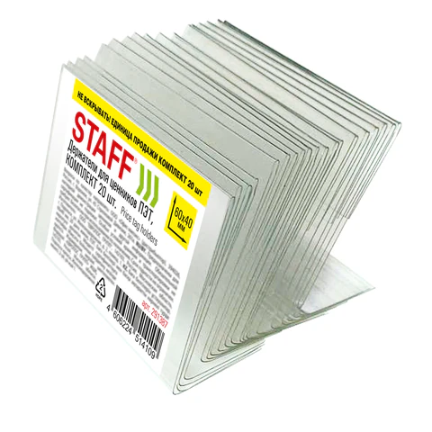 Держатели для ценников 60х40 мм, КОМПЛЕКТ 20 шт., ПЭТ, STAFF, 291387