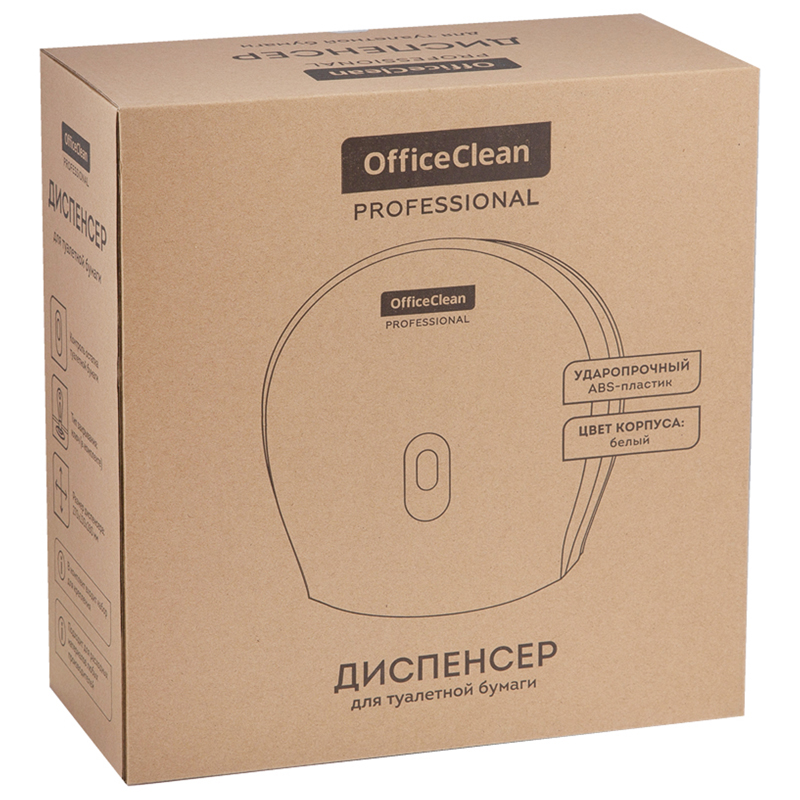 Диспенсер OfficeClean Professional предназначен для туалетной бумаги в рулонах. Цвет корпуса - бело-серый. Материал - ABS-пластик.