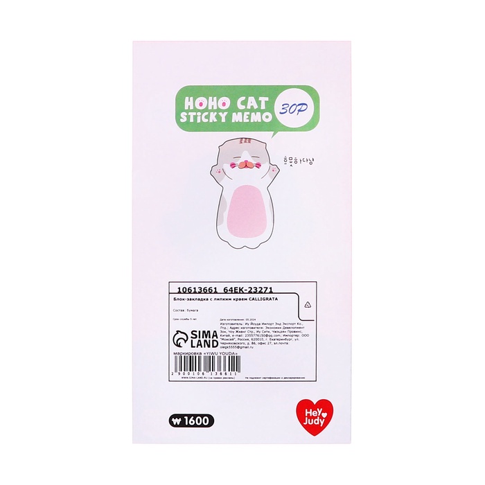 Блок-закладка с липким краем пластик Лапка 50л, розовый, 45мм х 45мм CALLIGRATA