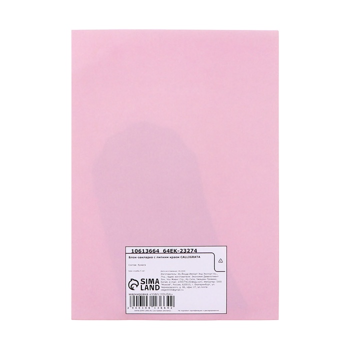 Блок-закладка с липким краем пластик Лапка 50л, розовый, 45мм х 45мм CALLIGRATA
