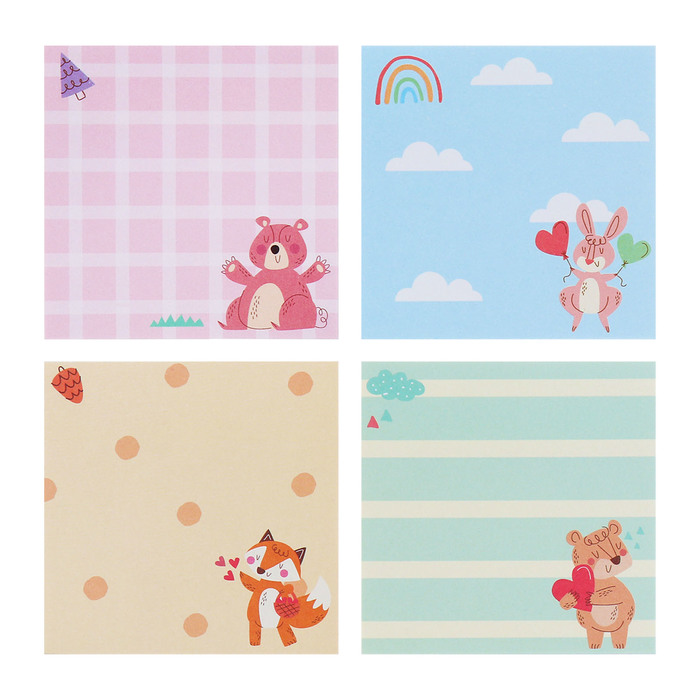 Блок-закладки с липким краем из бумаги, 20л*7 цветов, 57*17мм, 60*60 мм, 57*36мм, Мишки