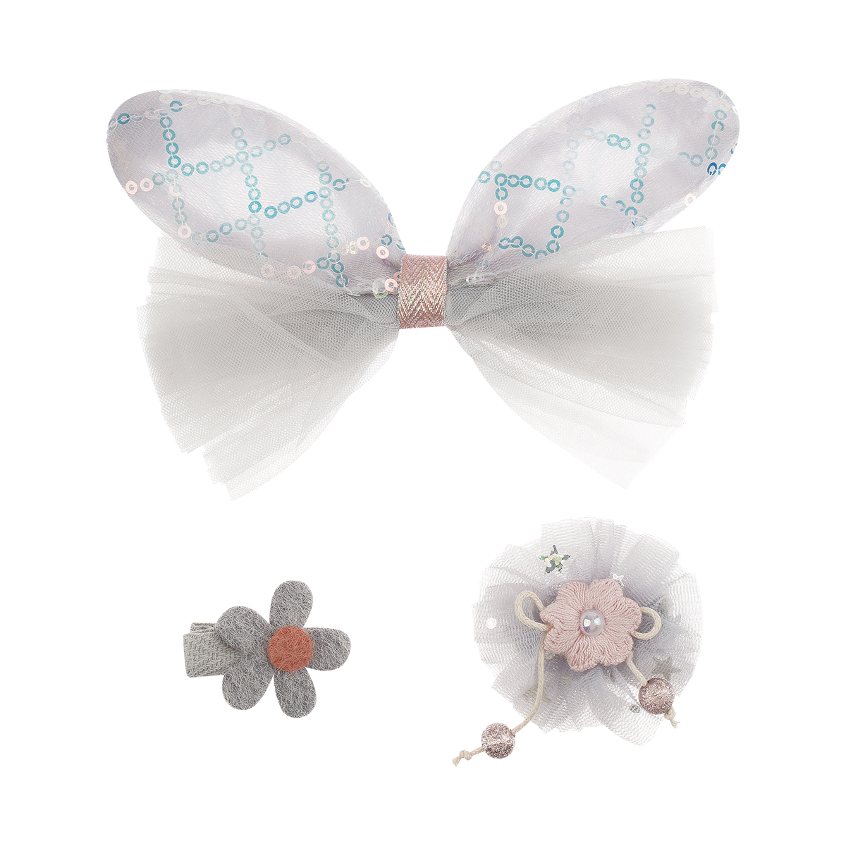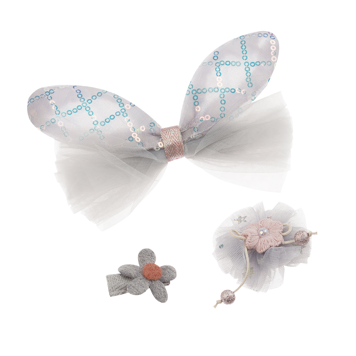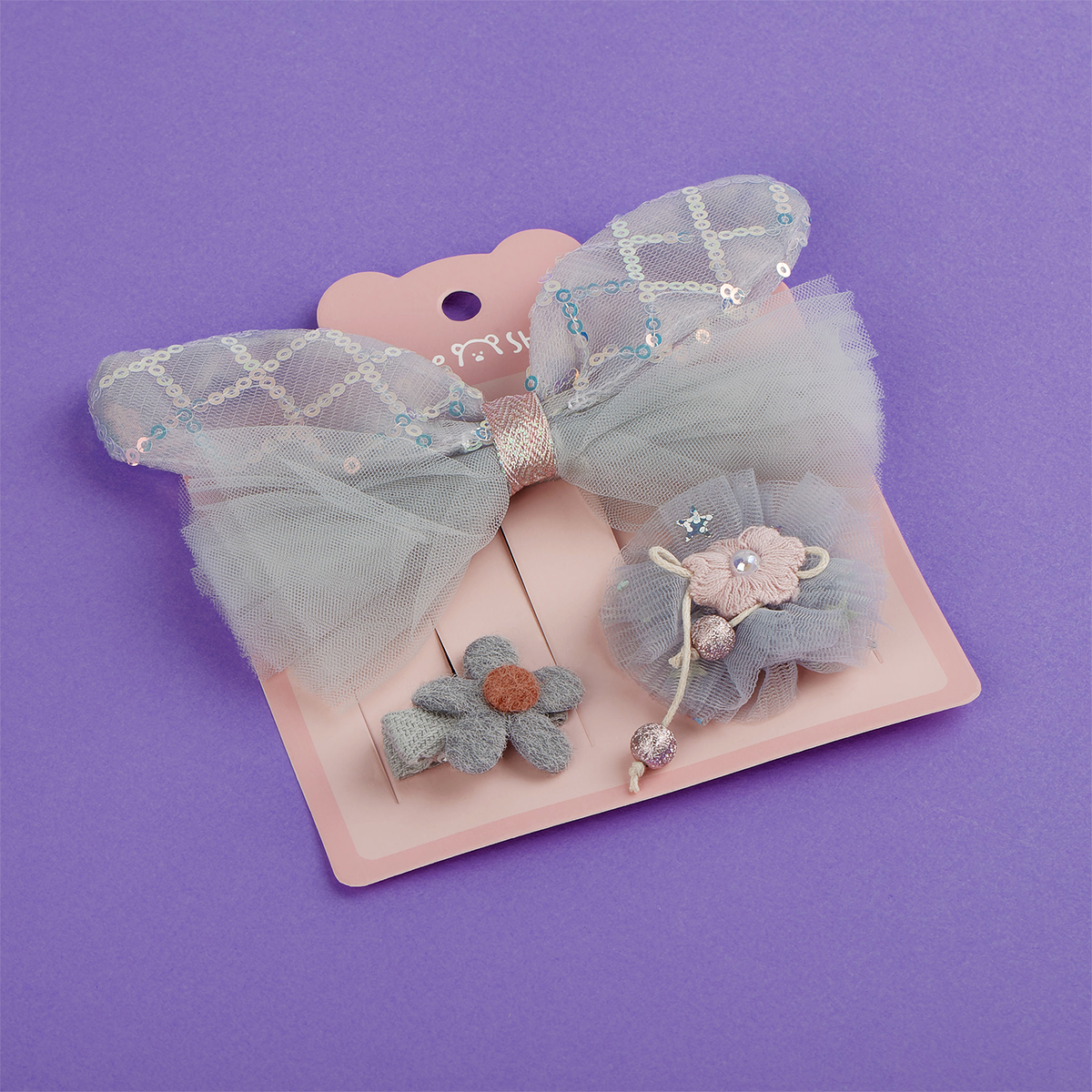 Заколки для волос MESHU с топперами, 3шт., розовый, европодвес