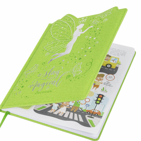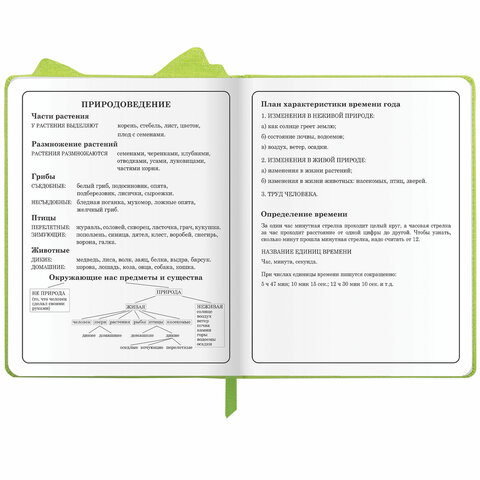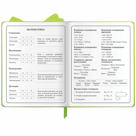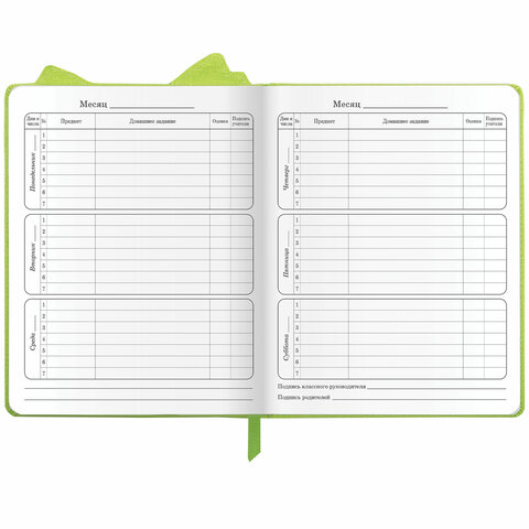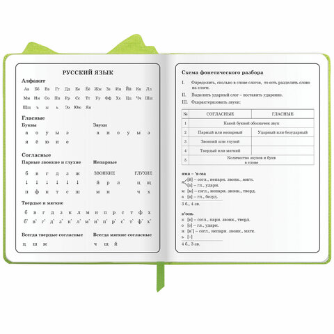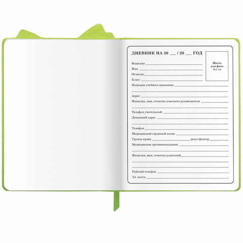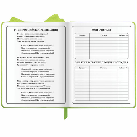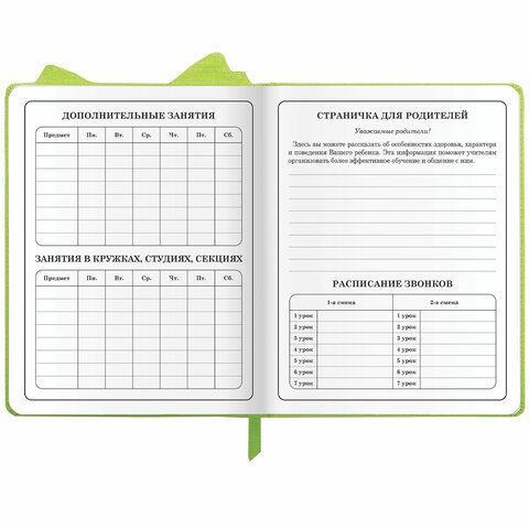 Предназначен для учащихся начальных классов. Твердая обложка из экокожи надежно защищает бумагу и долго сохраняет привлекательный внешний вид, а тиснение фольгой придает изделию оригинальность. Внутренний блок содержит 48 листов и состоит из офсетной белой бумаги плотностью 70 г/м2. В справочном материале собраны основные подсказки для учащихся. Для удобства пользования дневник снабжен закладкой-ляссе.