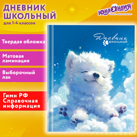 Дневник 1-4 класс 48 л., твердый, ЮНЛАНДИЯ, выборочный лак, с подсказом, Собачка, 107164