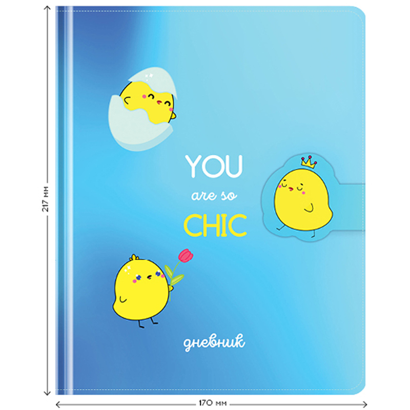 Дневник школьный для девочки универсальный (1-11 классы) Greenwich Line You are so chic в твердом переплете поможет школьнику организовать учебное и свободное время. Дневник состоит из 48 листов тонированной бумаги плотностью 70 г/кв. м. Рассчитан на 8 уроков в день, содержит справочный материал для школьника и закладку-ляссе. Модель имеет фигурный магнитный клапан, чтобы дневник не открывался. Обложка выполнена из экокожи. Упакован в индивидуальный пакет с этикеткой.<br/>• Тип – универсальный (1-11 классы);<br/>• Пол – женский;<br/>• Количество листов – 48;<br/>• Вид обложки – твердая, экокожа;<br/>• Блок – тонированный блок.