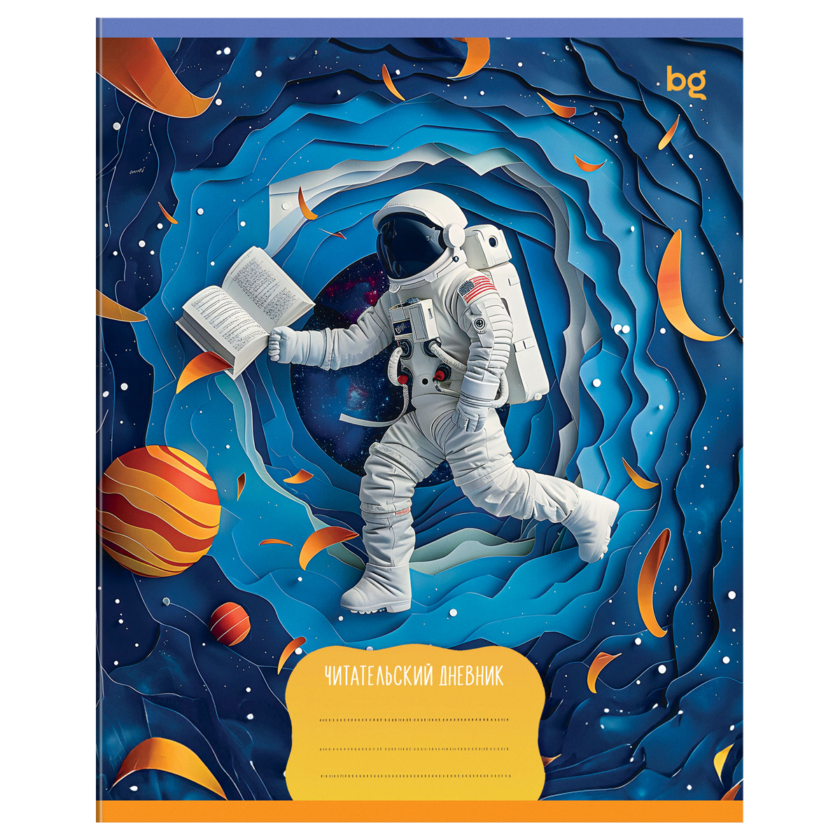 Читательский дневник BG «Вселенная» А5 формата, 24 листа. Вид скрепления − скрепка. Обложка − мелованный картон. Внутренний блок − офсетный, 65 г/м2. Читательские дневники помогают тренировать память, учат анализировать и понимать произведение, находить главное и выражать мысли. Это очень полезно, особенно для учеников младших классов. Для взрослых такой дневник – это некая форма отчета о прочитанном для себя и дальнейшей рекомендации друзьям.<br/>Помимо стандартных полей, в которых надо заполнить дату чтения, краткое содержание, жанр и т.п., в изделиях есть поле для рисунка. Можно нарисовать персонажа или сюжет из книги.<br/>Некоторые правила заполнения читательского дневника:<br/>1. Информацию о книге записывайте сразу после чтения.<br/>2. Ведите дневник аккуратно, стараясь заполнить все разделы.<br/>3. Если произведение понравилось и есть желание посоветовать друзьям, укажите причину.<br/>4. Сделайте иллюстрацию к прочитанному, это задействует зрительную память.<br/>• Количество листов: 24;<br/>• Формат: А5.