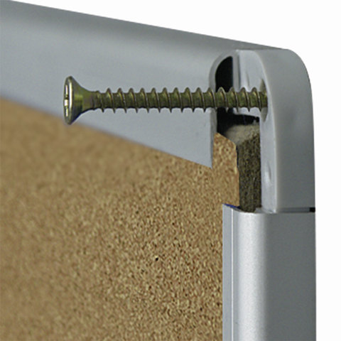 Пробковая поверхность доски позволяет легко размещать информацию и объявления с помощью кнопок, офисных булавок и т.п. Скрытое крепление к стене в четырех углах.