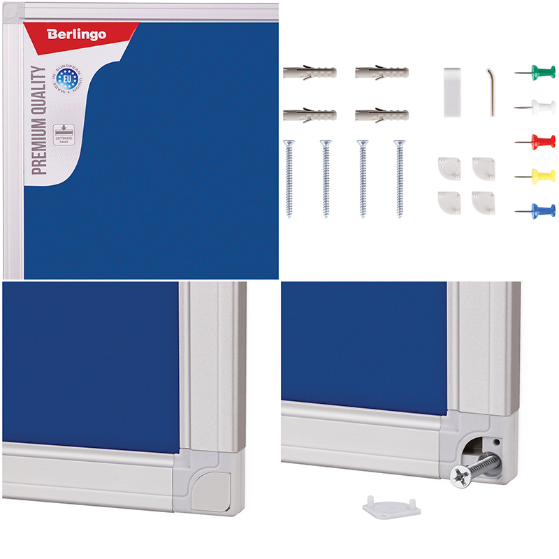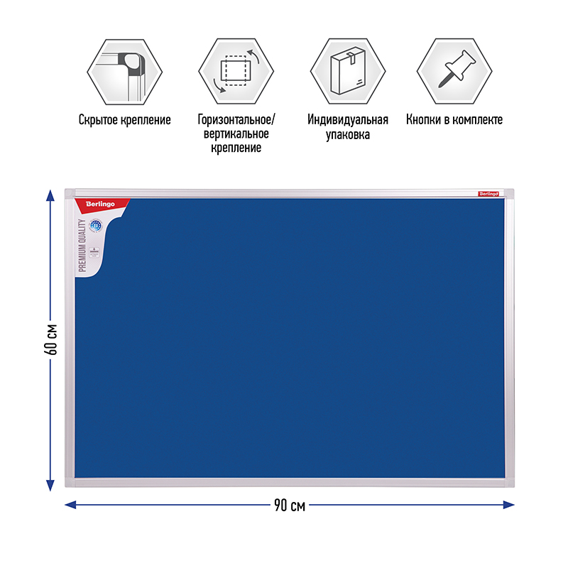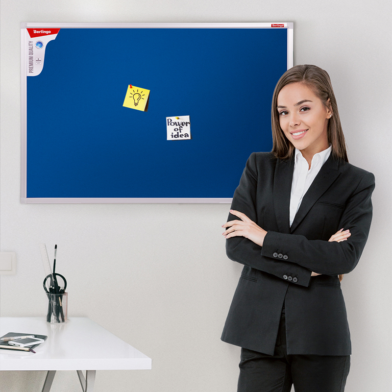 Доски с качественным текстильным покрытием синего цвета в элегантной рамке из алюминиевого профиля. Изготовлены на основе ДВП, что придает дополнительную прочность в процессе перевозки и хранения, а также износостойкость в процессе эксплуатации. Предназначены для размещения информационных материалов с помощью кнопок-гвоздиков и булавок. В комплект входят набор креплений и силовые кнопки.