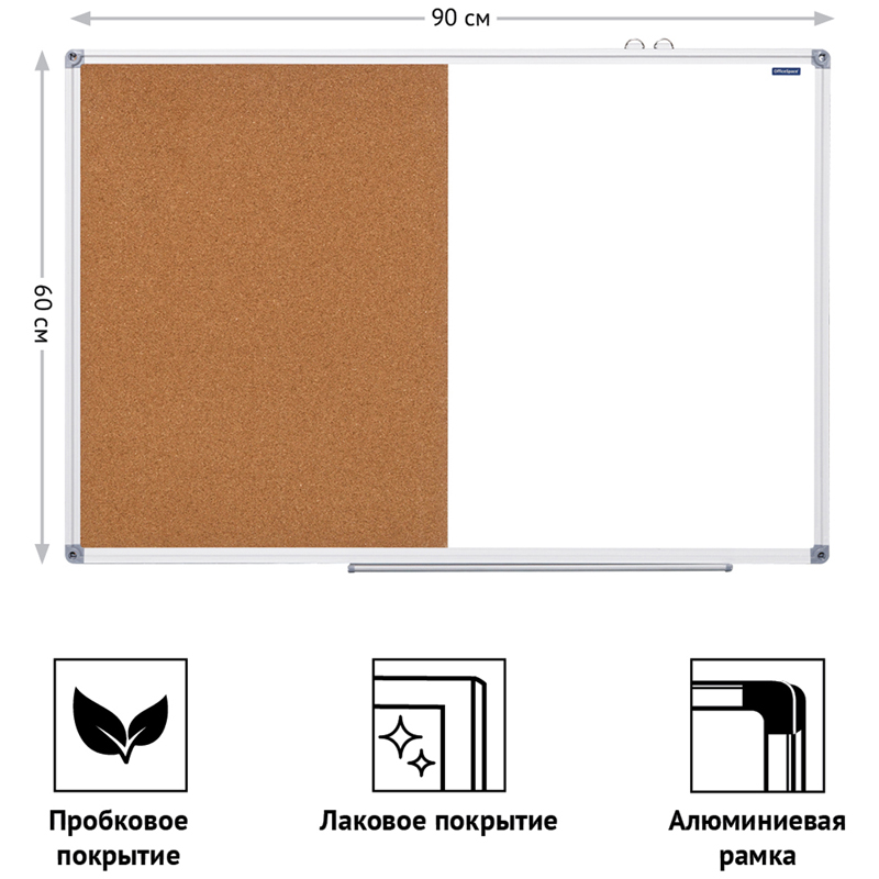 Доска магнитно-маркерная/пробковая OfficeSpace, 90*120см, алюминиевая рамка
