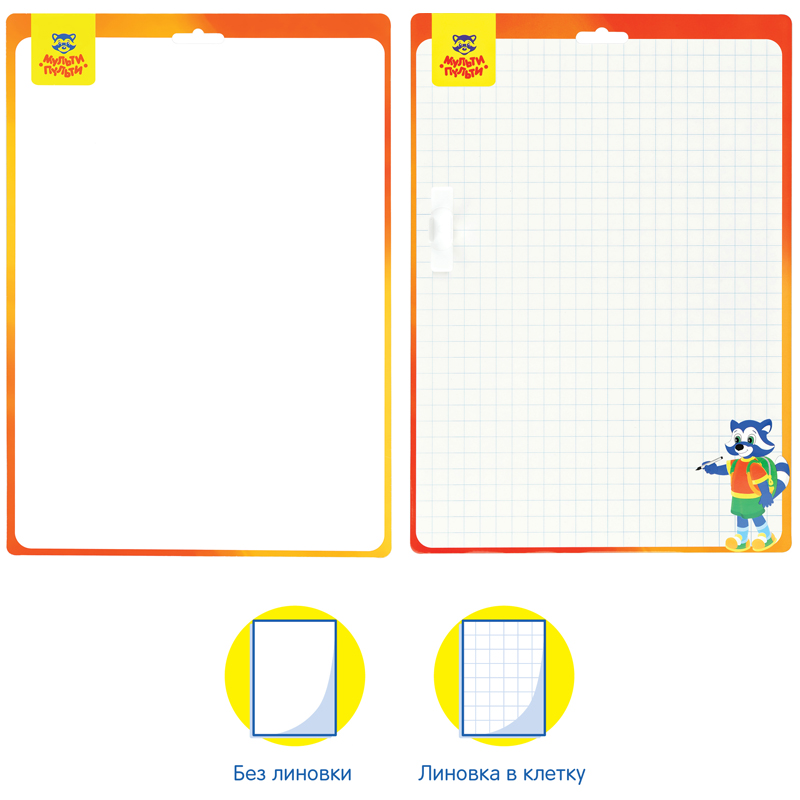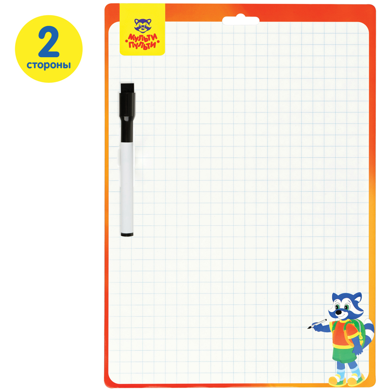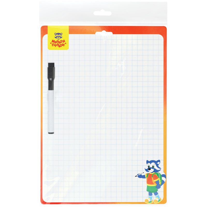 Набор для рисования и творчества «Мульти-Пульти» «Доска для рисования с маркером» – отличный помощник для письма и рисования. Двусторонняя доска размером 340*490 мм поставляется в комплекте с маркером и встроенной в него губкой. Необходимо использовать только специальные маркеры для маркерных досок, надписи стирать сухой губкой. Срок годности 36 месяцев. Упакован в пакет с европодвесом.