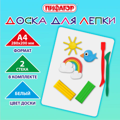 Доска для лепки А4, 280х200 мм, ПИФАГОР, белая, 274253