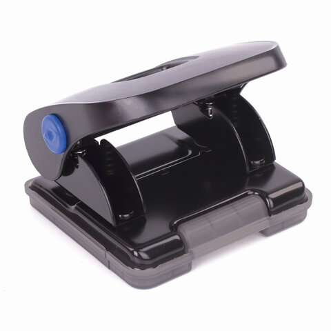 Металлический дырокол эргономичного дизайна пробивает до 30 листов бумаги. Благодаря качественным пробойникам обеспечивает легкое и точное пробивание. Количество пробиваемых отверстий - 2, диаметр каждого - 6 мм, расстояние между отверстиями - 8 cм. Метка центрирования поможет ровно разместить листы, а ограничительная линейка - пробить отверстия в нужных местах. Благодаря эргономичной форме поверхности дырокола руки не скользят во время работы. Оснащен контейнером для сбора мусора. Классический черный цвет отлично впишется в любой интерьер.