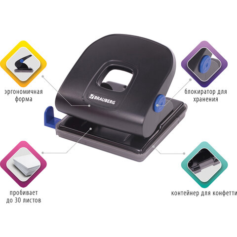 Дырокол BRAUBERG "SUPER", до 30 листов, черный, 272744