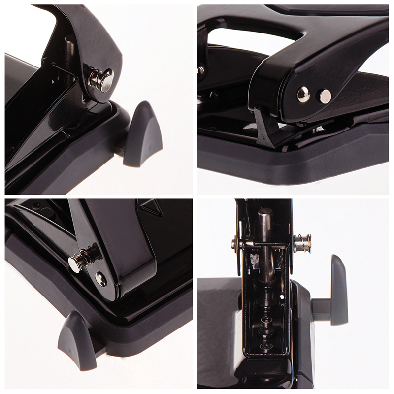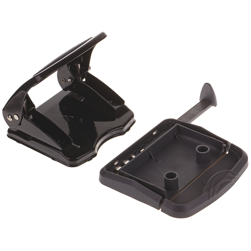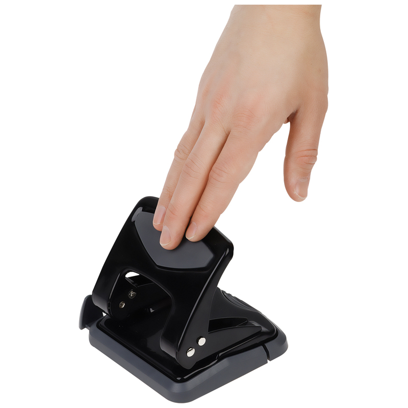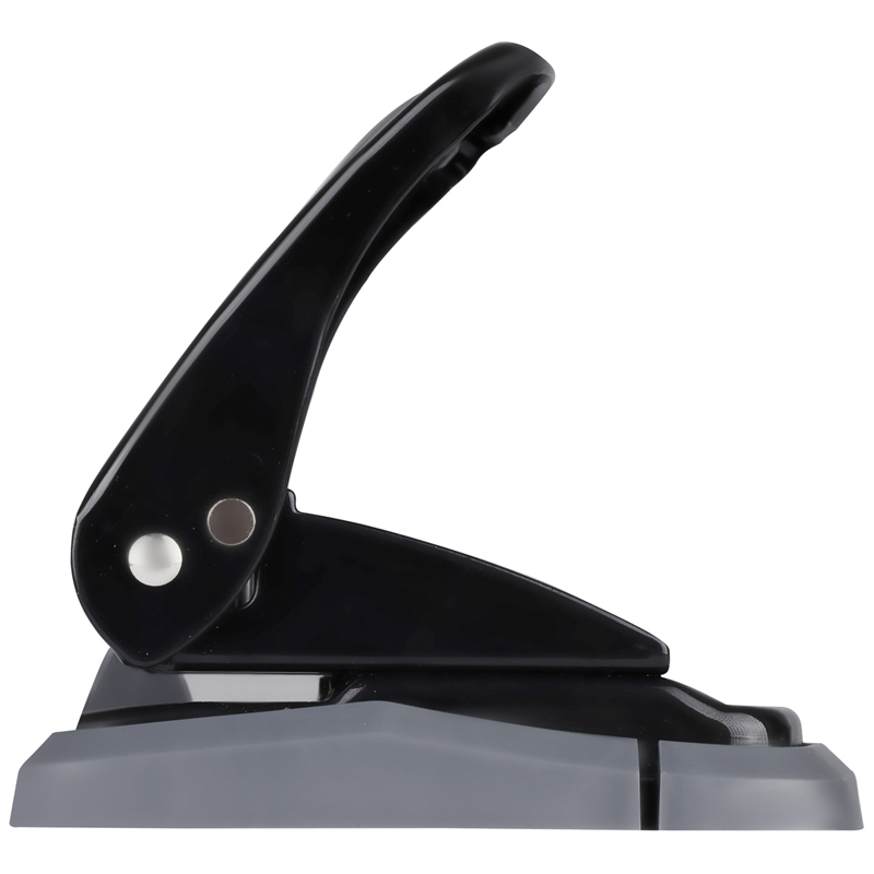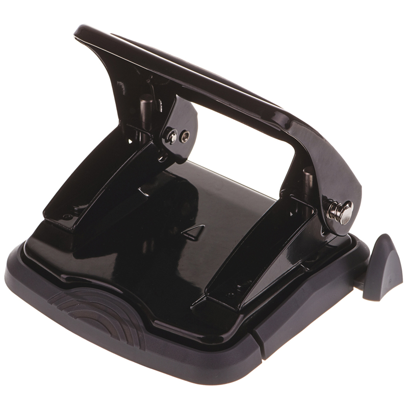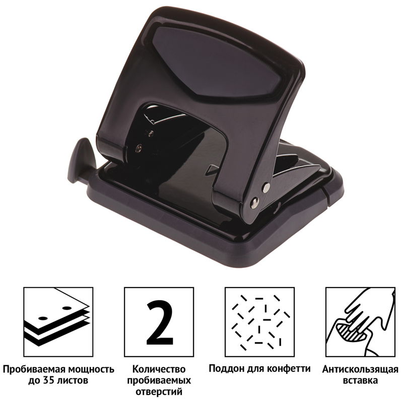 Металлический дырокол, пробивная мощность 35 листов. Дырокол снабжен ограничительной форматной линейкой, фиксатором и антискользящей вставкой. Цвет корпуса черный.