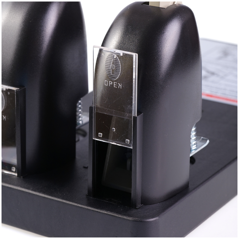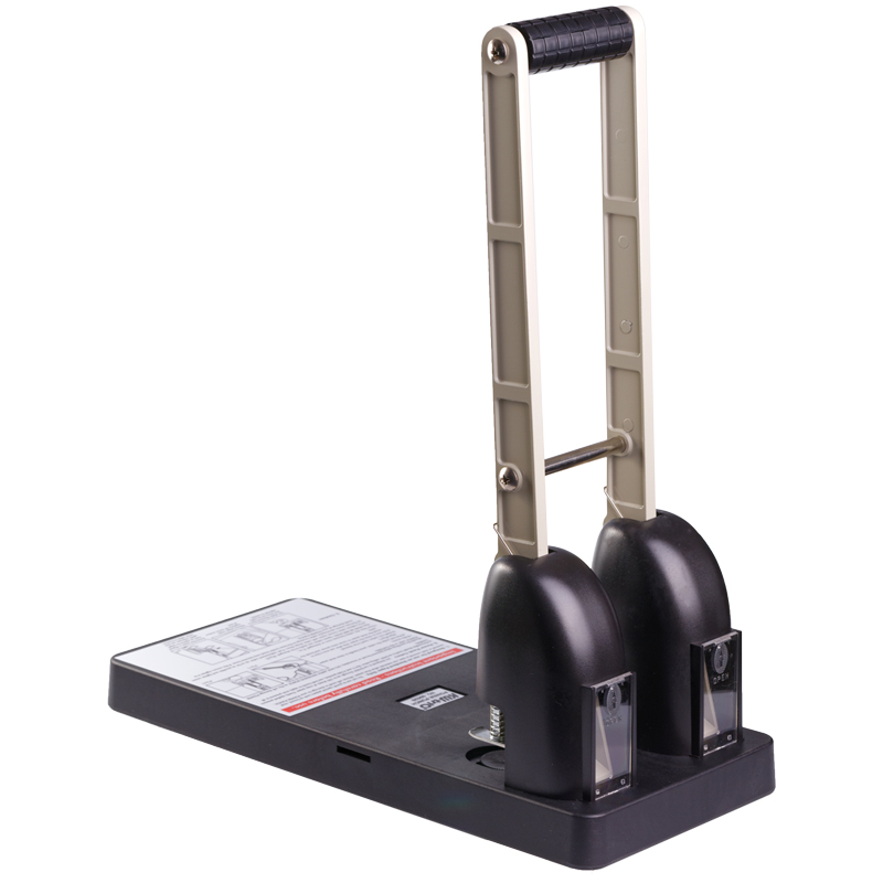 Хромированная линейка ограничителя стопы для настройки до формата А3. Удобный длинный стальной рычаг для работы с минимальными усилиями. Легко очищаемые пластиковые прозрачные заглушки для остатков бумаги. Блокировка дырокола для транспортировки или длительного хранения с помощью специальной текстильной петли-ленты. Надежный стальной механизм на устойчивой базе из черного ударопрочного пластика. Возможна замена ножей и дисков