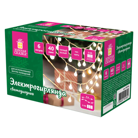 Светодиодные гирлянды ЗОЛОТАЯ СКАЗКА – это яркие, красочные и эффектные спутники любого праздничного события. Мягкий и вместе с тем насыщенный свет этих украшений позволяет использовать их для придания магического и праздничного свечения внутри помещений