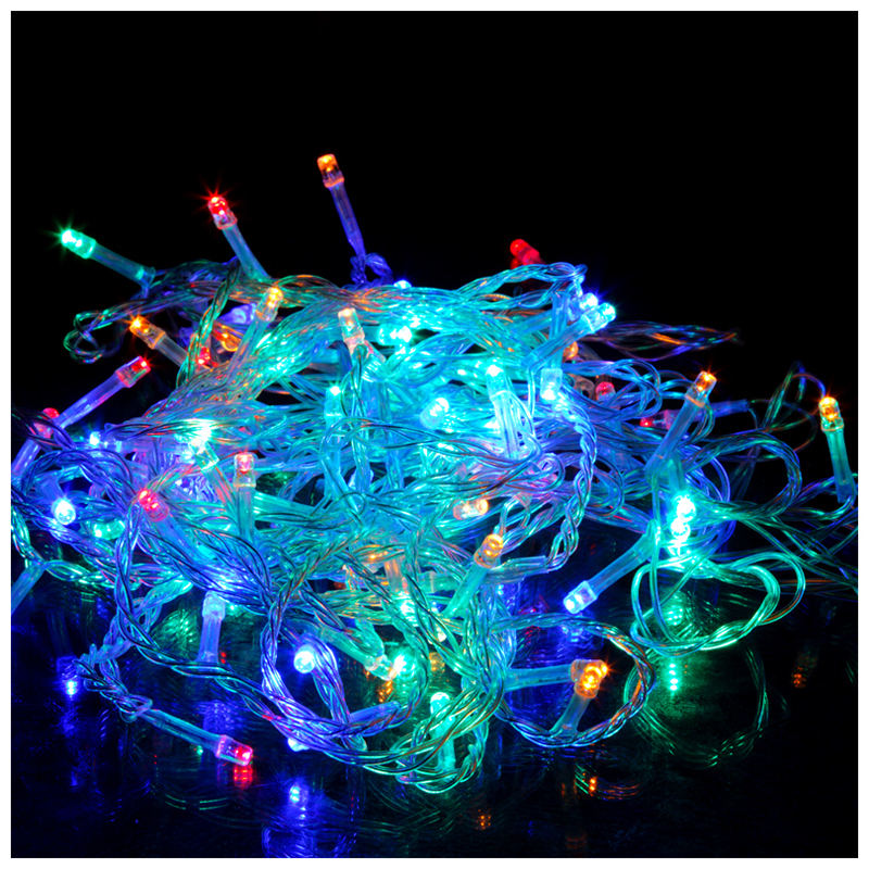 Новогодняя гирлянда имеет 100 светодиодов, которые размещены на проводе длиной 10 метров. Благодаря такой длине можно ярко оформить большое пространство, декорировать поверхности любой площади или создать свой декоративный орнамент из нити гирлянды.