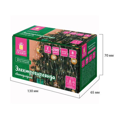 Гирлянда имеет 100 светодиодов, которые размещены на проводе длиной 4 метра. Такое плотное размещение позволит украсить яркой лентой длинную стену или создать декоративный орнамент из нити гирлянды. Прекрасно подходит для оформления дверных и оконных проемов.