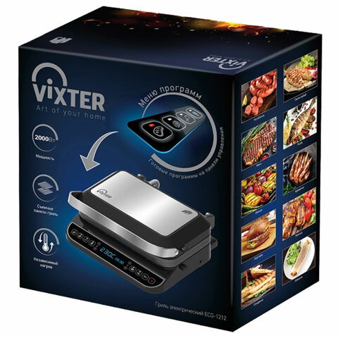 Электрогриль VIXTER ECG-1212 обеспечивает равномерное прожаривание стейков из мяса и рыбы, овощей и других продуктов, благодаря мощности 2000 Вт, которая позволяет держать температуру высокой на протяжении всего времени приготовления.
