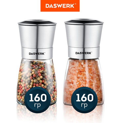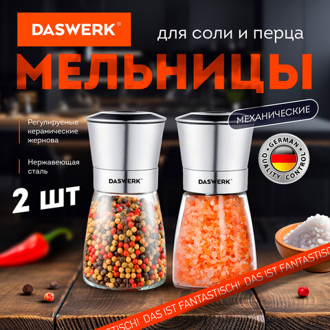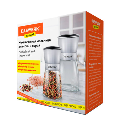 Механическая мельница для соли и перца 2 в 1, 4 уровня помола, нержавеющая сталь, DASWERK, 456627