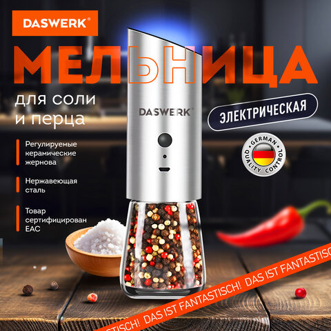 Мельница для соли и специй электрическая с подсветкой, 4 уровня помола, DASWERK, 456621