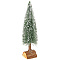 Ель декоративная высотой 35 см, украшенная инеем на деревянной подставке.
