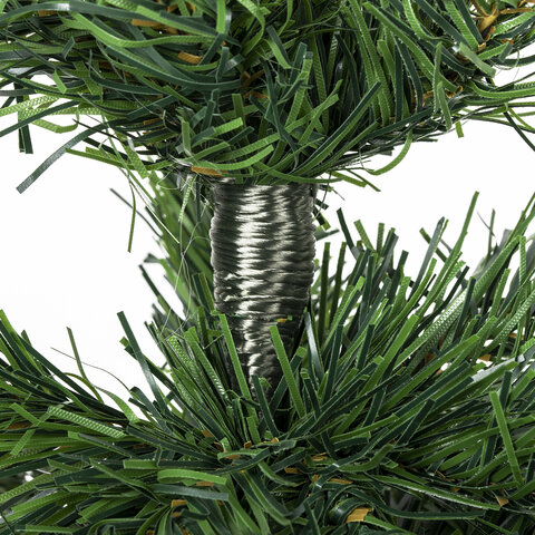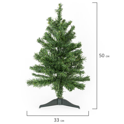 Ель искусственная настольная представляет собой конструкцию из металлического каркаса и закрепленных к нему ветвей. Материал хвои - ПВХ. Цвет хвои - зеленый. Высота ели - 50 см. Диаметр нижнего яруса - 33 см. Тип крепления ветвей к стволу - примотка. Данный тип крепления подразумевает, что ветви уже закреплены к стволу и после покупки необходимо самостоятельно расправить веточки для того, чтобы ель приобрела нужную форму. Материал подставки - пластик.
