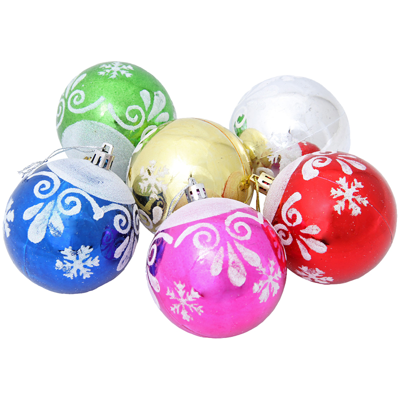 Набор пластиковых шаров с рисунком отлично дополнит новогоднее убранство вашего дома.