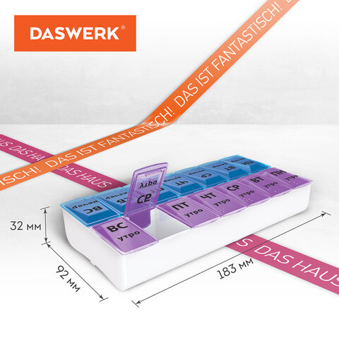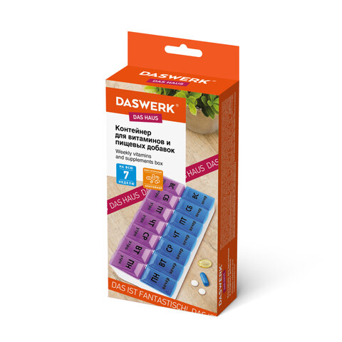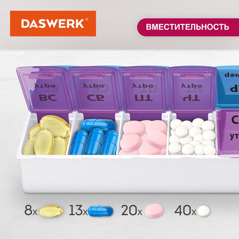 ТАБЛЕТНИЦА / Контейнер-органайзер для лекарств и витаминов, 7 дней/3 приема BOX, DASWERK, 630848