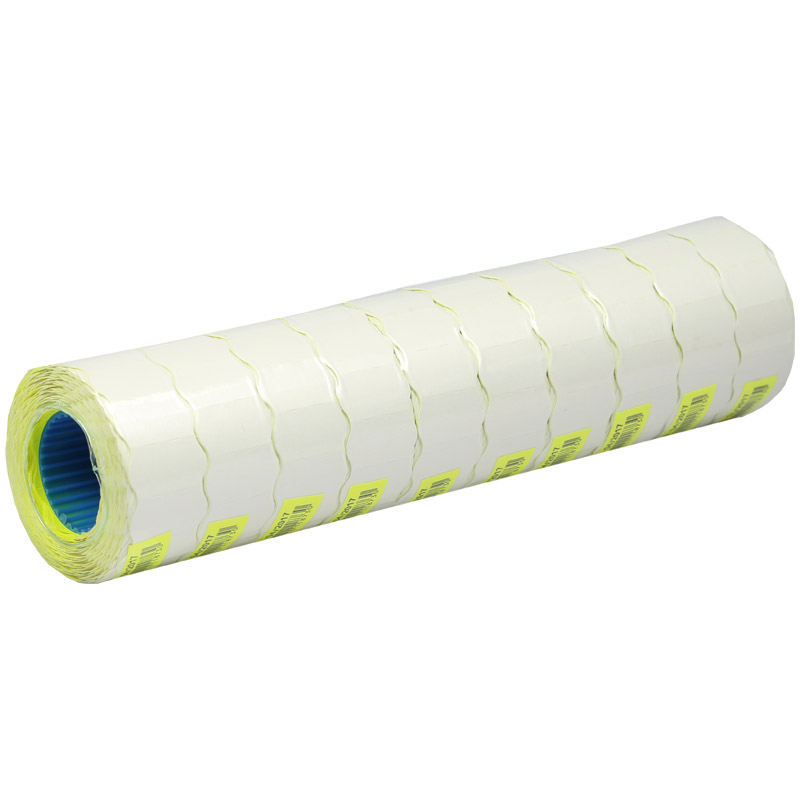 Волнистая этикет-лента для маркировки товаров. Размер наклейки - 22*12 мм. В упаковке 10 рулонов по 800 наклеек. Цвет - желтый