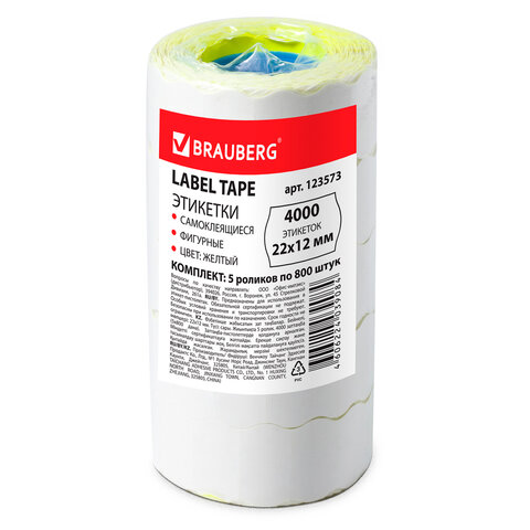 Цвет - желтый, форма - "волна". Один рулон содержит 800 этикеток размером 22x12 мм. 5 рулонов в комплекте. Поставляются в термоусадочной пленке.
