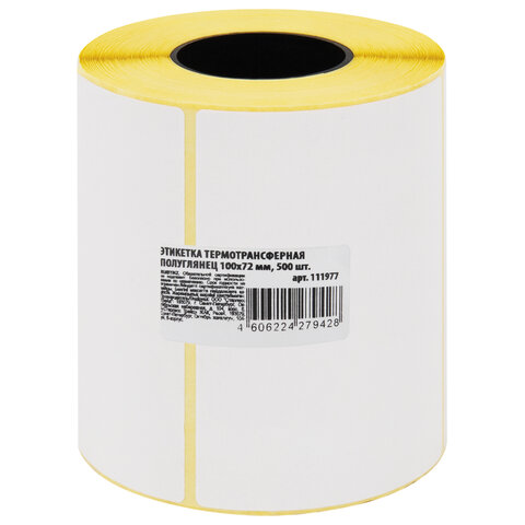 Этикетка термотрансферная ПОЛУГЛЯНЕЦ (100х72 мм), 500 этикеток в ролике, 115611