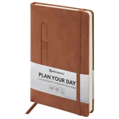Ежедневник недатированный А5 148x218 мм BRAUBERG "Optimal", под кожу, 160 листов, резинка, держатель для ручки, коричневый, 118643