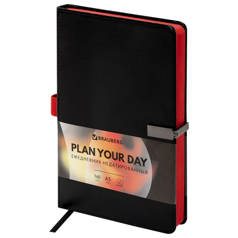 Ежедневник недатированный А5 148x218 мм, BRAUBERG "Inspiration", под кожу, застежка, цветной срез, 160 листов, черный, 118648