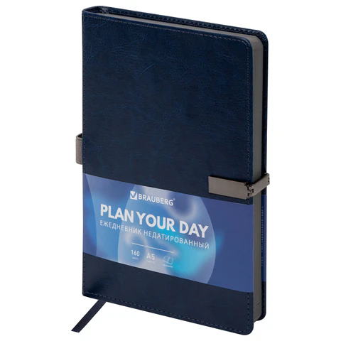 Ежедневник недатированный А5 148x218 мм, BRAUBERG "Inspiration", под кожу, застежка, цветной срез, 160 листов, синий, 118649