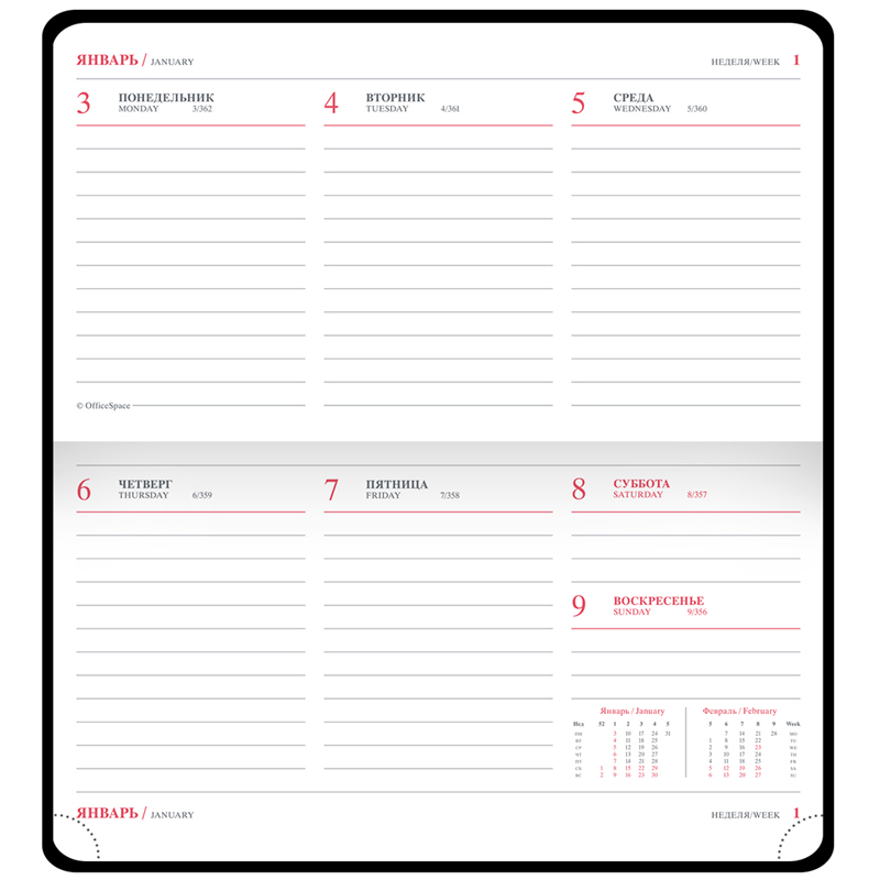 Еженедельник датированный карманного формата из коллекции «Winner». Обложка изготовлена из высококачественного кожзаменителя с поролоновой прослойкой, цвет обложки - бордовый. Внутренний блок состоит из 64 листов офсетной бумаги плотностью 70 г/м2, печать блока в 2 краски, справочный материал. Удобная закладка-ляссе.