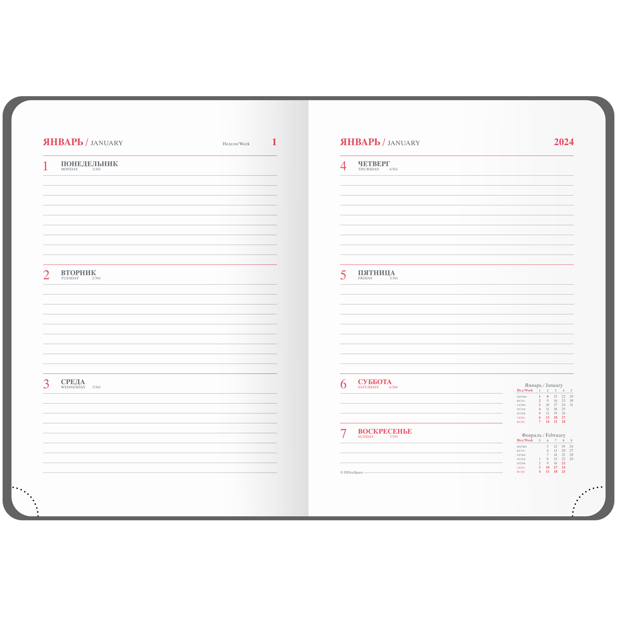Стильный датированный еженедельник на 2024 год OfficeSpace серии Winner формата А5 станет отличным помощником в планировании дел. Еженедельник имеет размер 145*205 мм. Внутренний блок – 64 листа офсетной белой бумаги плотностью 70 г/м2 с печатью в 2 краски. Обложка с поролоновой прослойкой изготовлена из высококачественной экокожи синего цвета с гладкой мягкой матовой поверхностью. Перфорированные скруглённые уголки и закладка-ляссе обеспечат комфорт и удобство при использовании изделия. Внутри есть полезный справочный материал. Датированный еженедельник подходит под персонализацию. Изделие упаковано в пакет.
