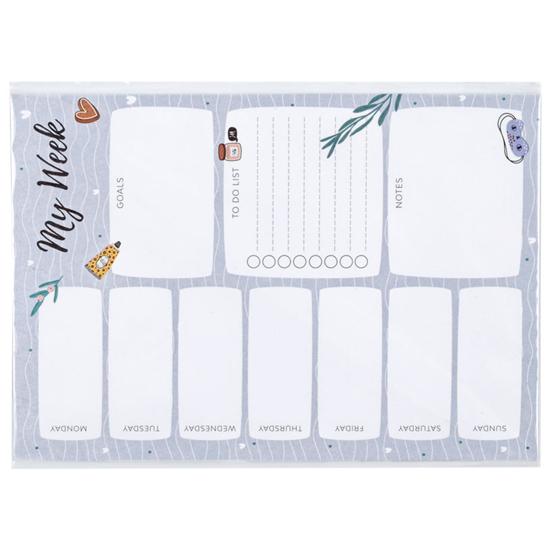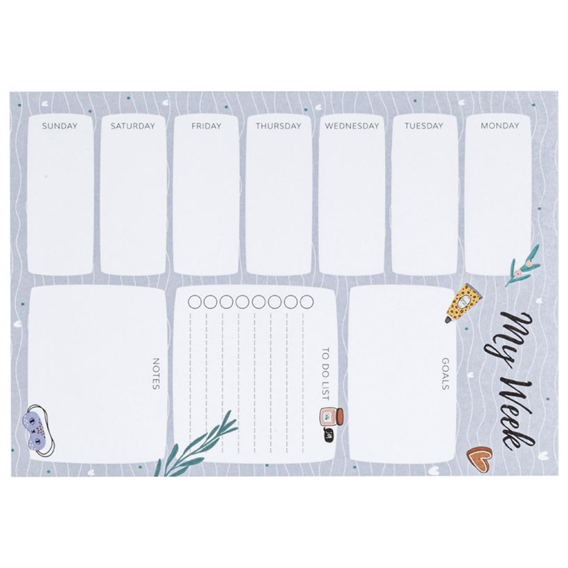 Планер на неделю MESHU. Размер - 148×210 мм. Бумага офсетная 80 г/м2. 30 листов с оригинальным дизайном. Недатированный. На склейке. Индивидуальная упаковка.