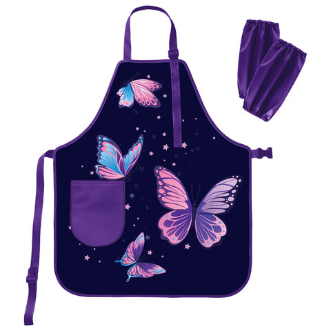Фартук с нарукавниками для уроков труда BRAUBERG, 1 карман, 46x54 см, "Shining butterflies", 274657