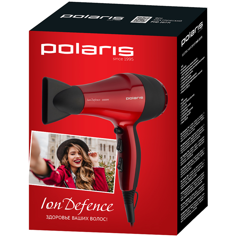 Стильный и компактный фен POLARIS PHD 2077i имеет мощность 2000 Вт и оснащен встроенным ионизатором. Главное преимущество такого устройства — польза, которую оказывают отрицательно заряженные ионы. Ионы ослабляют вредное воздействие горячего воздуха и снижают вред, причиняемый регулярной сушкой и укладкой. Фен POLARIS PHD 2077i с ионизатором защищает волосы от обезвоживания и пересушивания. Благодаря этой функции волосы теряют меньше влаги. Под воздействием ионов влага на волосах превращается в мельчайшие капельки и быстрее впитывается. Фактически, волосы сушатся вдвое меньшим количеством тепла и вдвое быстрее.<br/><br/>Фен POLARIS PHD 2077i оборудован режимом «холодный воздух», 2-ступенчатым переключателем мощности и 3-ступенчатым переключателем температуры. «Мягкое» нескользящее покрытие ручки корпуса приятно и удобно в использовании. К фену POLARIS PHD 2077i прилагается узкая насадка-концентратор и удобная петля для подвешивания. Прибор надежно защищен от перегрева.