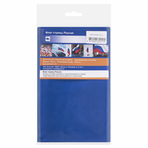 Флаг РФ 90*135см, с гербом, пакет с европодвесом