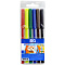 Яркие и насыщенные фломастеры – 6 цветов. Изготовлены из хорошего пластика, оснащены вентилируемым колпачком, согласно нормам безопасности, и легко отстирываются с одежды. Диаметр корпуса – 8 мм, размер с колпачком – 133 мм.