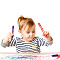 Фломастеры представлены с коническим наконечником. Утолщённая форма корпуса удобна для маленьких детей и позволяет легко держать фломастер в руке. Фломастеры выдерживают сильный нажим, наконечник не вдавливается внутрь. Полностью безопасные гипоаллергенные чернила на водной основе с пищевыми красителями. Фломастеры не высыхают без колпачка в течение 96 часов. Специальные вентилируемые колпачки обеспечивают прохождение воздуха при случайном проглатывании. Фломастеры JOVI легко смываются с кожи и отстирываются с большинства видов тканей. Упакованы в картонную коробку с европодвесом.